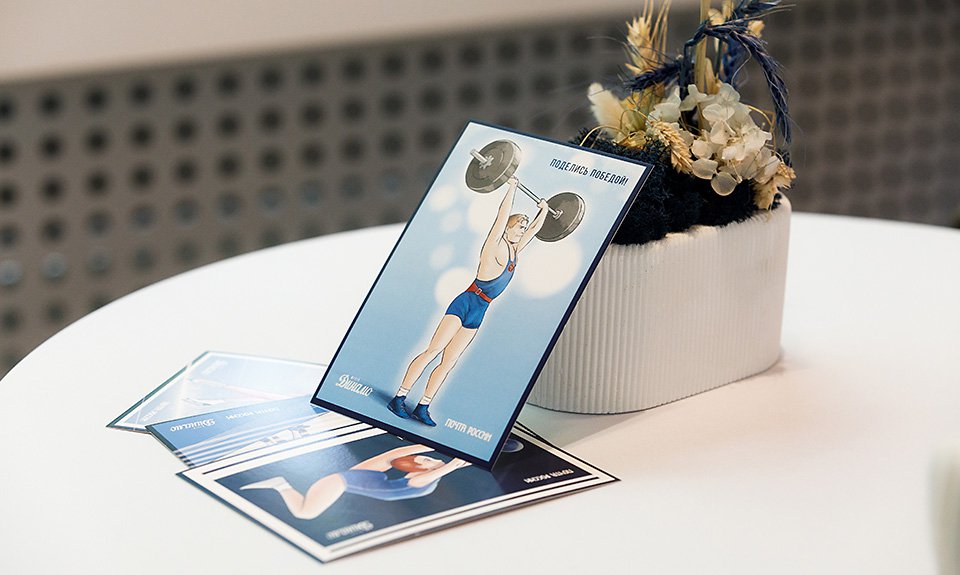 В почтовый ящик, установленный на первом этаже музея, можно бросить любую из четырех открыток, сделанных специально для этой акции. Они посвящены четырем видам спорта, в которых динамовские спортсмены многократно становились чемпионами и завоевывали медали высшего достоинства: художественная гимнастика, фехтование, тяжелая атлетика и фигурное катание. Их дизайн основан на архивных кадрах из музейной медиатеки — пополняемой коллекции электронных материалов, которые рассказывают о том, как история общества «Динамо» отразилась в современной культуре, как формировались география его объектов, идентичность и дизайн, какой след спортсмены общества оставили в истории мирового спорта. Эту открытку Почта России бесплатно доставит в любой регион страны.