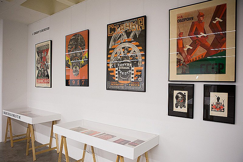 Помимо плакатов и афиш, в экспозицию вошли редкие почтовые открытки, рисунки, журнальные обложки, марки, образцы упаковки и архивные фото тех лет, когда дизайн становился инструментом пропаганды нового политического строя. Так, один из восьми задуманных кураторами разделов имеет название «СССР на стройке как Библия для нищих». Ежемесячный иллюстрированный журнал «СССР на стройке» выходил до 1941 года на пяти языках. Оставаясь эффективным средством пропаганды советской власти, он тем не менее публиковал снимки лучших советских фотографов: Александра Родченко, Аркадия Шайхета, Георгия Петрусова, Семена Фридлянда.
