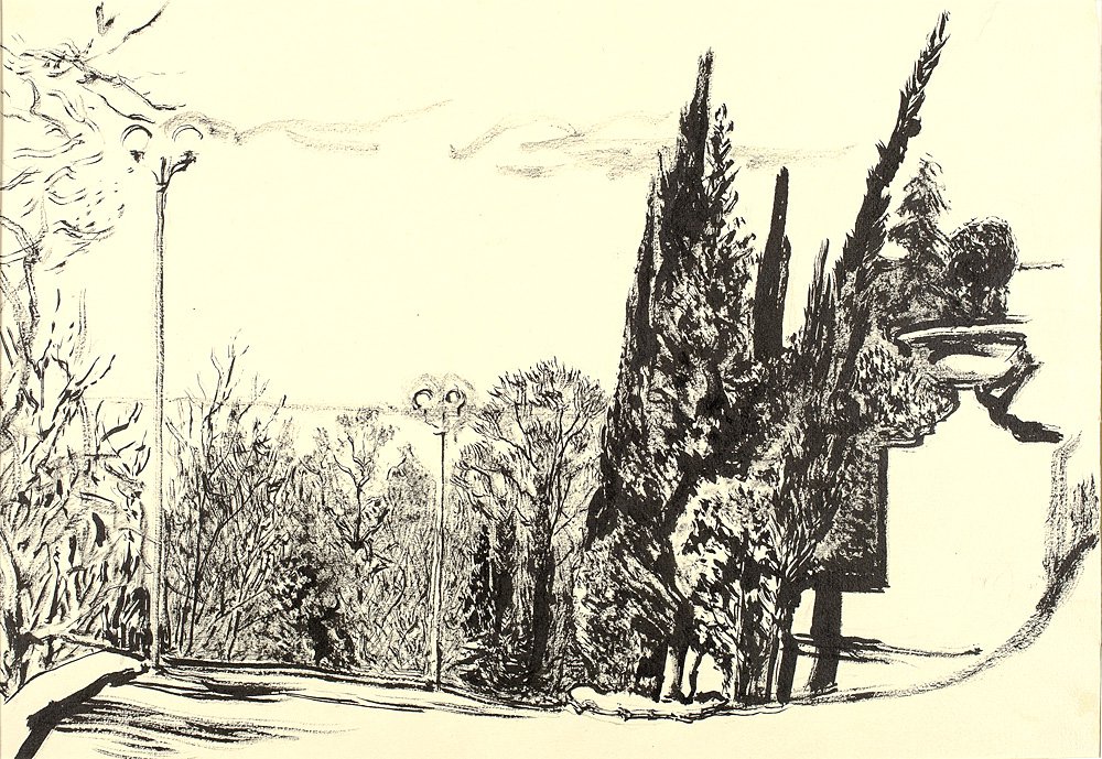В 1920-е годы Петр Митурич в течение семи лет был видным преподавателем московского Вхутемаса, в числе таких выдающихся фигур отечественного цеха графиков, как Николай Купреянов, Павел Павлинов, Владимир Фаворский. Решительно призывая своих учеников к продуманной работе над рисунком, к применению сложного контура и энергичной штриховки, к отказу от тушевой затертой манеры, Митурич одновременно оттачивал собственные графические принципы, называя себя «суровым» или «действенным реалистом». В этот период окончательно формируется круг его излюбленных пластических мотивов в виде непритязательных пейзажных зарисовок с деревьями, домами, заборами, камерных портретов родных, друзей и знакомых.