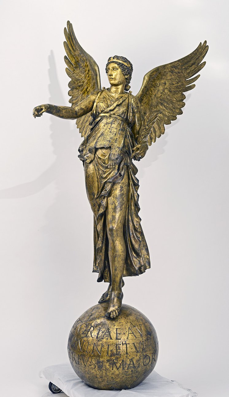 О другом имеющем отношение к Германии шедевре, на сей раз из античного собрания Государственных музеев Берлина, ничего не было слышно как минимум с 1939 года. Это крылатая статуя «Виктория Кальватоне», один из редчайших уцелевших образцов римской позолоченной бронзы. Она тоже внезапно нашлась, и, хоть в Германию ее возвращать не планируют, Фонд прусского культурного наследия все равно объявил, что он очень рад обретению столь важного памятника культуры, и принял участие в реставрации. Скульптура обнаружилась в России среди трофейного искусства, вывезенного из Германии после войны. Она поступила в Государственный Эрмитаж, где ее попросту потеряли, поместив среди французского классицизма XVII века. В 2010-е ее опознали и начали изучать, в 2014–2019 годах провели реставрацию, и Эрмитаж представил статую на итоговой выставке.